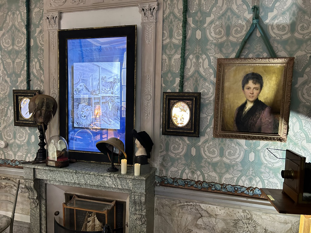 Le Cabinet de curiosités comprend le rez-de-chaussée de la maison, une ancienne école qui jouxte la maison avec une salle de projection et une galerie, un salon de thé et des jardins avec des arbres centenaires, un potager et une roseraie.